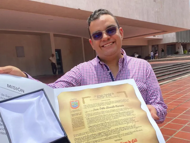Juan Pablo Alvarado Herrera es egresado de los programas de Derecho y Psicología en el año 2022 y recientemente fue condecorado por el Concejo Municipal de Santiago de Cali en reconocimiento a su destacada labor en el sector social.
